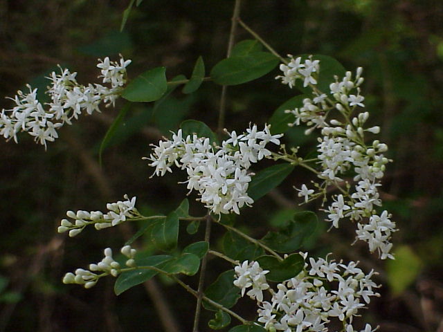 Bona Dea was really flooded today,Thursday. It had rained almost 3 inches last night and this morning. You could not get to the spillway on Swinging Bridge Trail or around to the South side of the park. The pumping station was working full time but was not taking out the water that was going in to the park. This photo shows Waldon Way Trail at the north end. I did take some wildflower pics. The blueish long cluster flower is an Indian Tobacco plant then one of the leaves of the same plant taken on the pumping station trail. The yellow wildflower is a Common Tickseed which was taken by the pumping station. Also on Black Water Swamp at the Bird Blind was a mother Wood Duck and her 2 young ones. Also all along all the trails are Privet bush plants which I have in my yard and in a lot of yards in this part of the country which produces a very thick hedge and grows very fast. They have the white flowers and then dark blue or black berries later on. The Red Wing Blackbirds were in the swamp as well as the Eastern Kingbirds. A watersnake was seen at the head of Swinging Bridge trail in a place where it normally is dry land. Also small fish fry were swimming in area that are usually above water. There were some Gray Squirrels roaming around where they could find a dry spot. A Great Blue Heron wading bird landed in the flooded area where I took the photo then flew off when it saw me.